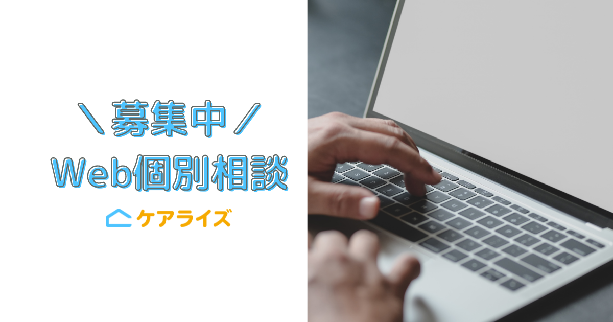 ケアライズに興味はあるけど、まずは話しだけでも聞いてみたい方に向けて、Web個別相談を承ります。訪問介護の現場についてや、ケアライズの働き方など、あなたの素朴な疑問に、現場のスタッスがお答えします!