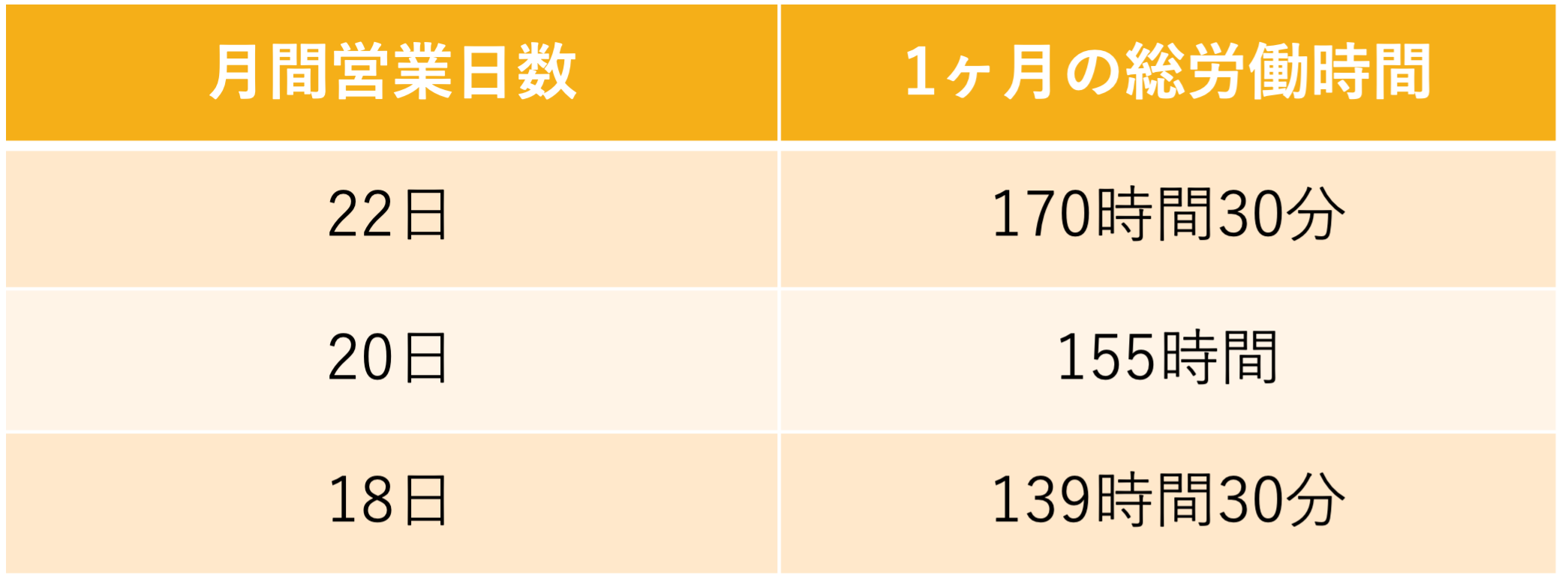 | 総労働時間 | 7時間45分×月間営業日数 |